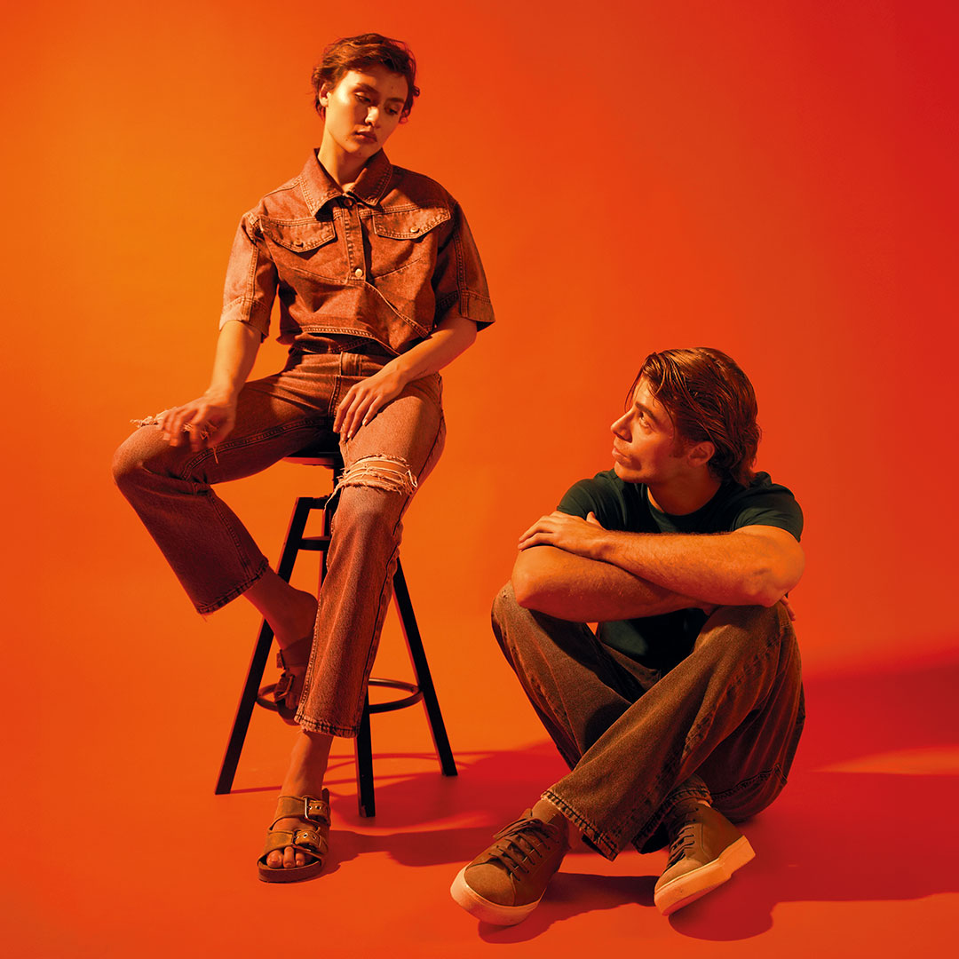 A wide vintage family—from real rigid to comfort stretch—maps the miles: Roots & Rivets spirit with unexpected layering, rock’n’roll, and a dash of punk. Linen and regenerative cotton blends keep it conscious; neutral palettes meet a sunny palette in washes that move from summer blues to earthy shades. Special, magic-finished fabrics and indigo + earth-shade overdyes deliver that sun-baked, stage-ready patina—equally commercial and premium, always authentic. Add a little mischief—Boho boys energy, a vest over a tee, a chore over a slip—and the night is yours.